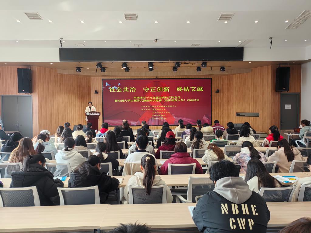 授旗仪式后,由信阳市疾控中心艾防专家以“知艾防艾、共享健康”为题开展防艾知识主题讲座,系统讲解“艾滋病”“防、治、管、控”全链条知识,同时开展了有奖问答活动。会场气氛热烈,同学们积极踊跃抢答,大家纷纷表示,活动形式多样、实践性强,学习效果明显。